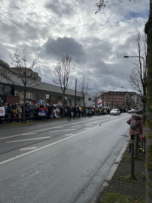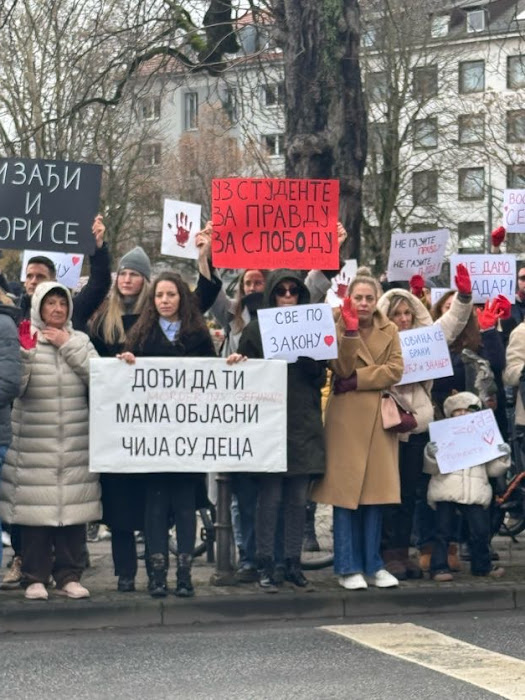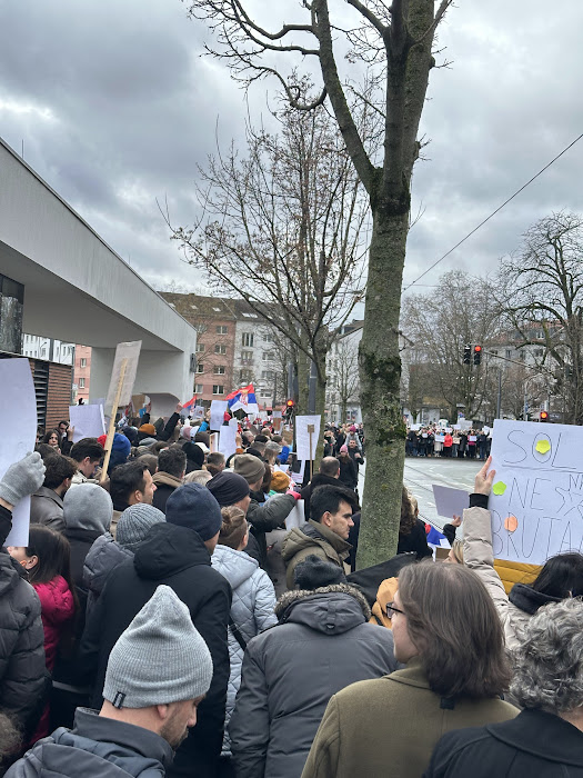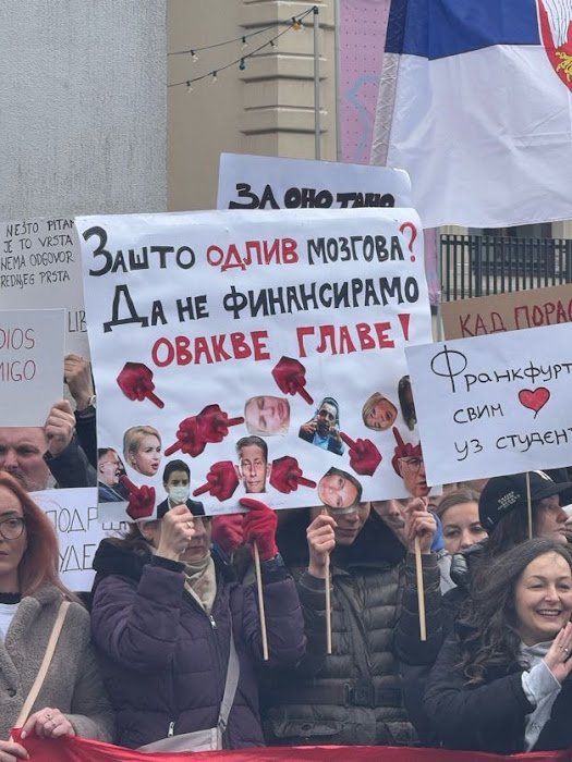 Fotografije sa protesta u Frankfurtu redakciji je poslala Nišlijka Biljana Stojanović Ljubišić, a po njenim rečima bilo je prisutno više stotina Srba koji žive i rade u ovom nemačkom gradu.