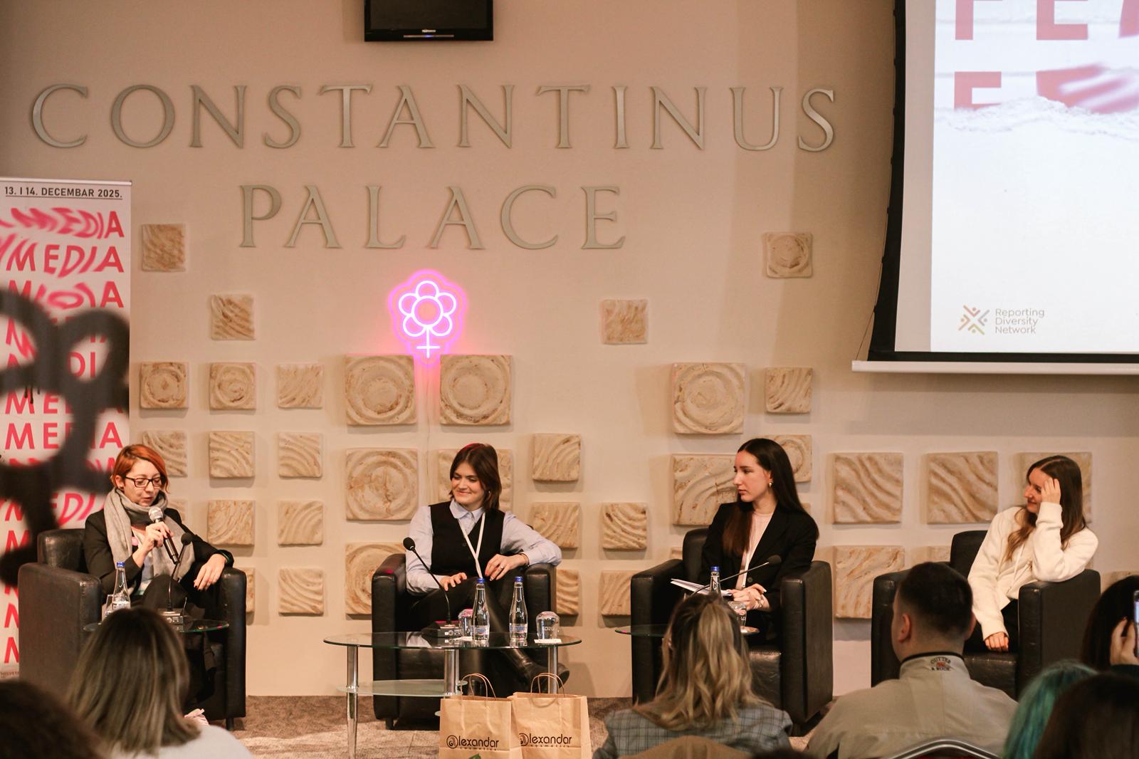 Panel o osvajanju medijskog prostora bio je posvećen položaju žena u medijima, a svoja iskustva podelile su Anja Anđušić, Iva Parađanin Lilić i Dolores Milošev Erdeg. Govorilo se o manjku žena na vodećim pozicijama, efektu „staklenog plafona“, nejednakim platama, ali i većoj izloženosti nasilju i pretnjama. Poruka panela bila je jasna – žene moraju da osvajaju medijske prostore jer im oni nisu unapred dati.