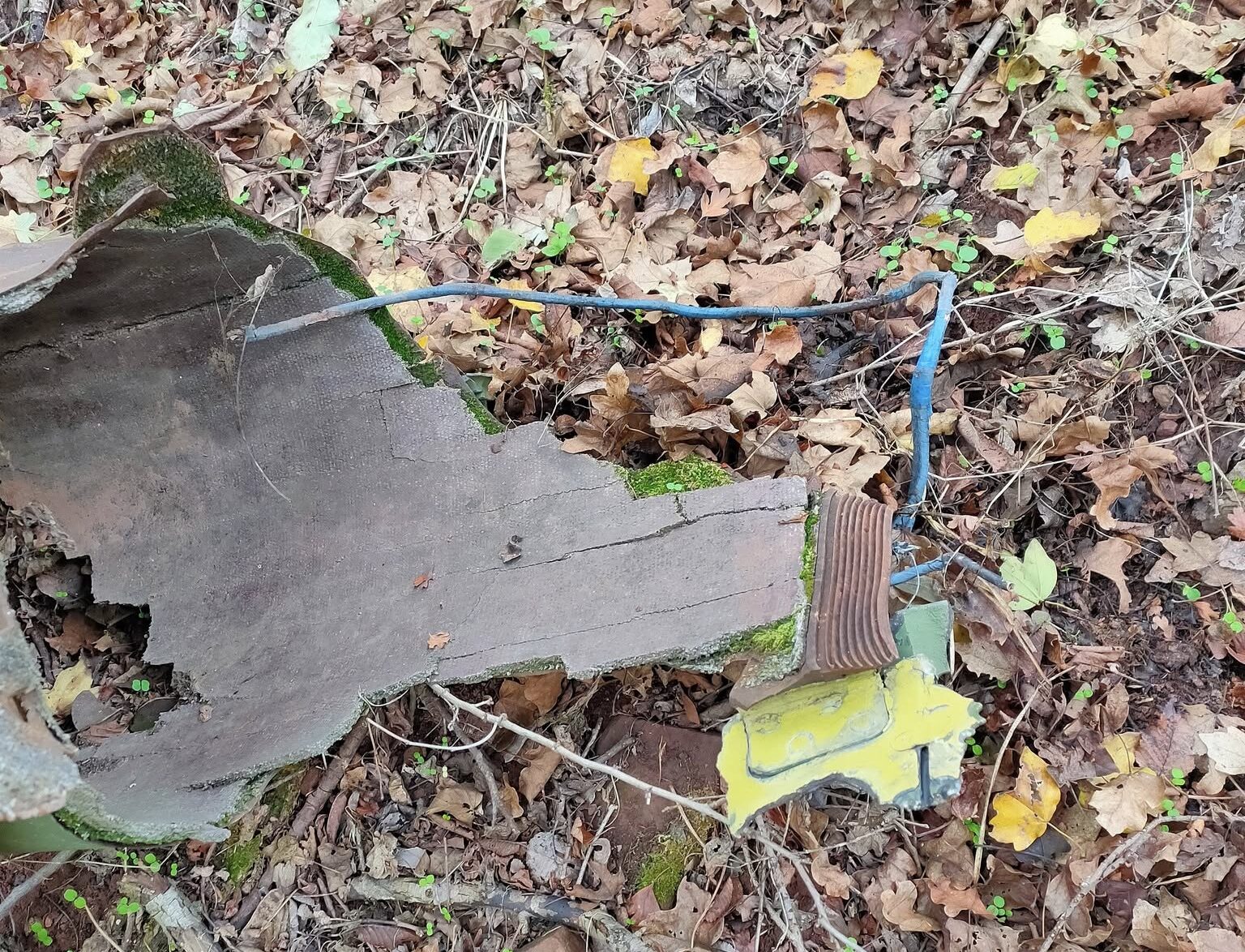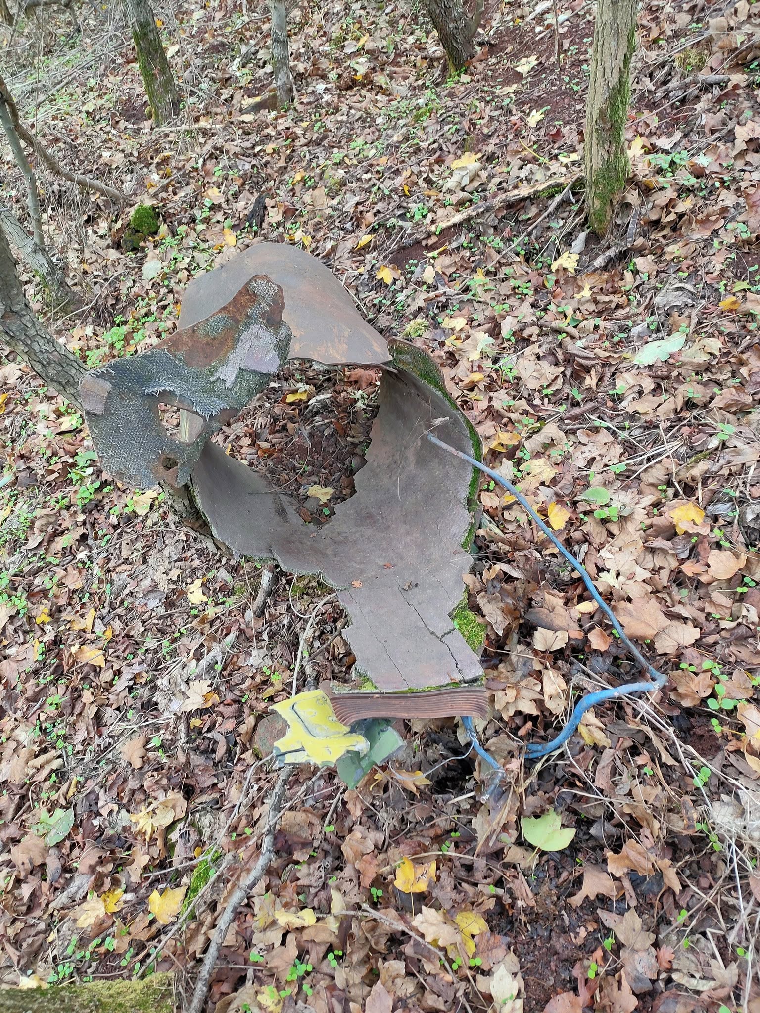 Lutajući po šumi, gde inače često prolaze lovci, Nikica Miljoković pronašao je delove metalne konstrukcije. Kaže da je pokušao da ih pomeri kako bi razgledao da li imaju neke oznake, ali nije uspeo, jer su suviše teški.