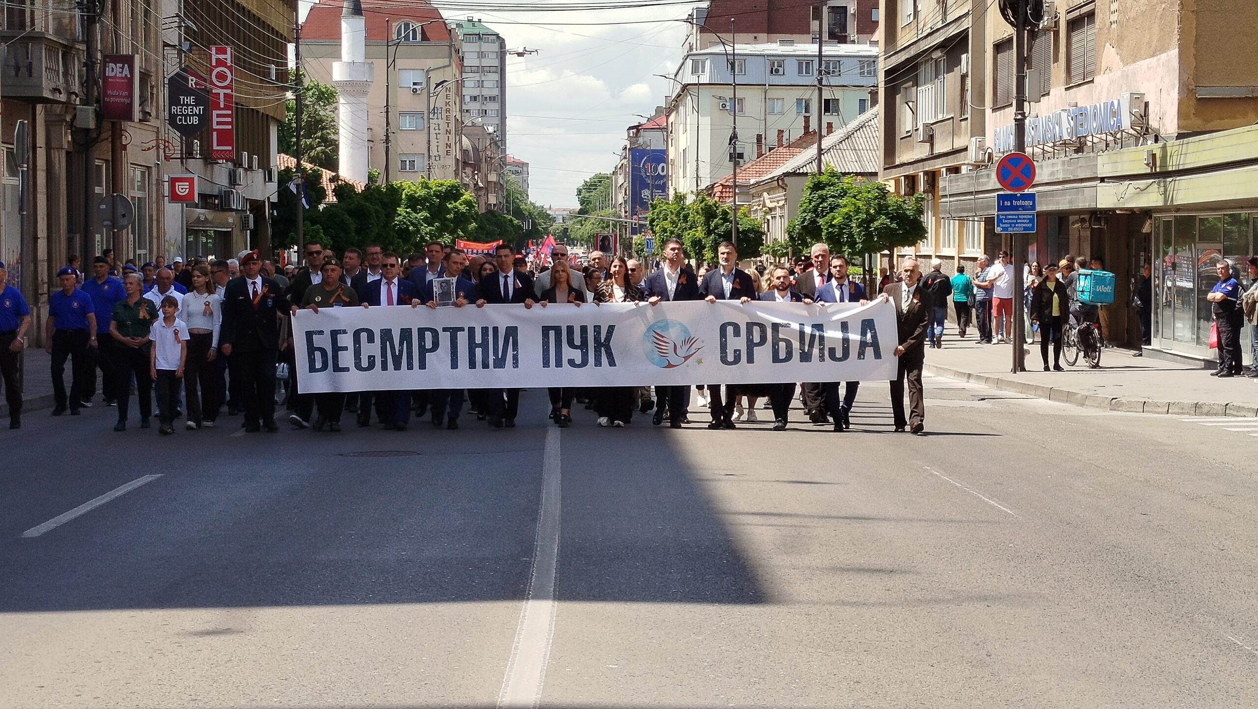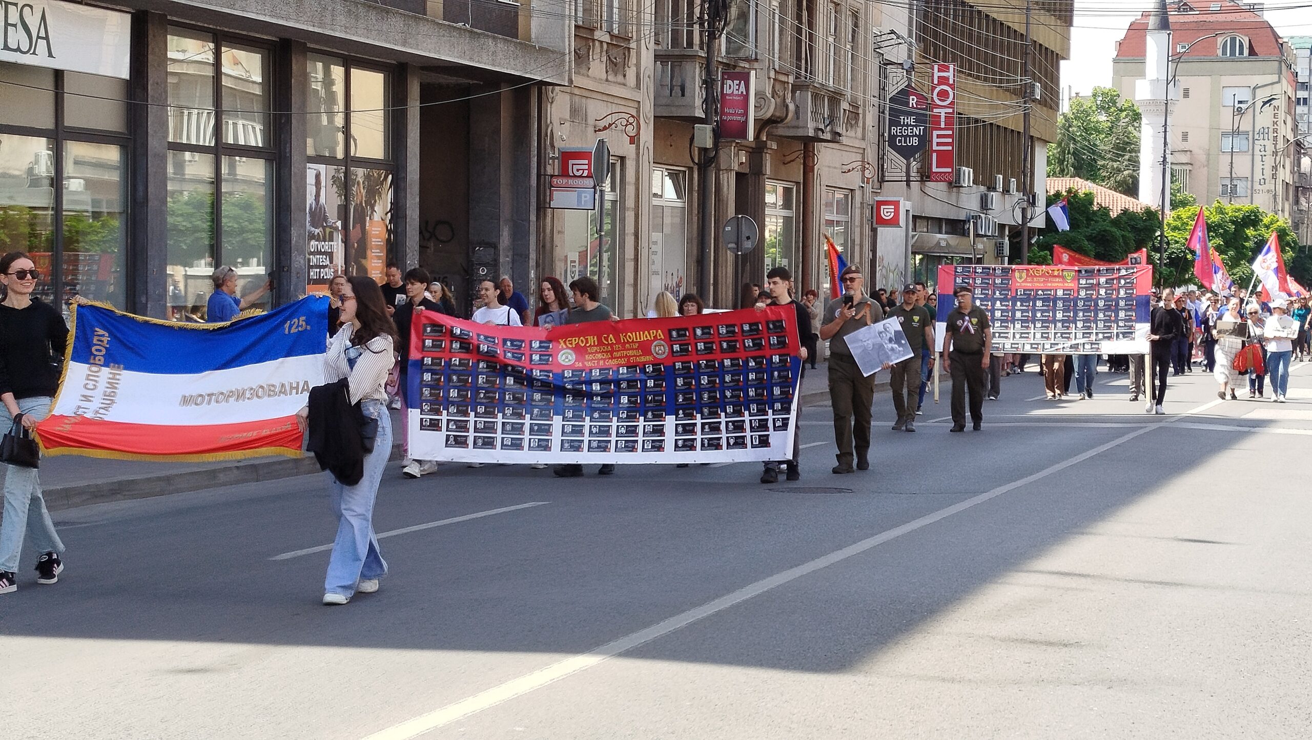 Učesnici marša nosili su zastave i fotografije svojih rođaka i predaka stradalih u Drugom svetskom ratu, kao i u ratovima na prostoru bivše Jugoslavije i tokom NATO bombardovanja 1999. godine.