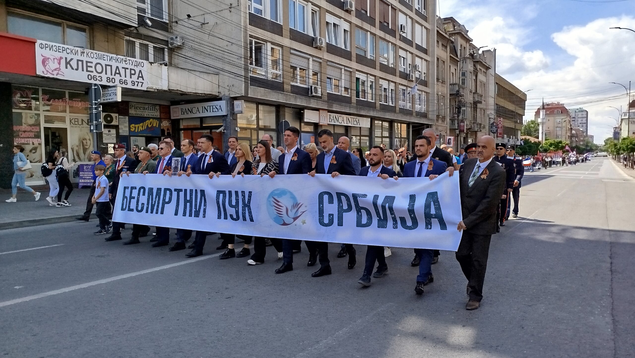 Niš, 9. maj – Povodom Dana pobede nad fašizmom, u Nišu je danas održan marš „Besmrtni puk“, koji je okupio brojne građane, potomke ratnika i predstavnike veteranskih udruženja. Učesnici su prodefilovali trasom od spomenika palim sovjetskim vojnicima ispred nekadašnjeg logora „12. februar“ do Trga kralja Milana, gde su položeni venci na spomenik oslobodiocima Niša.